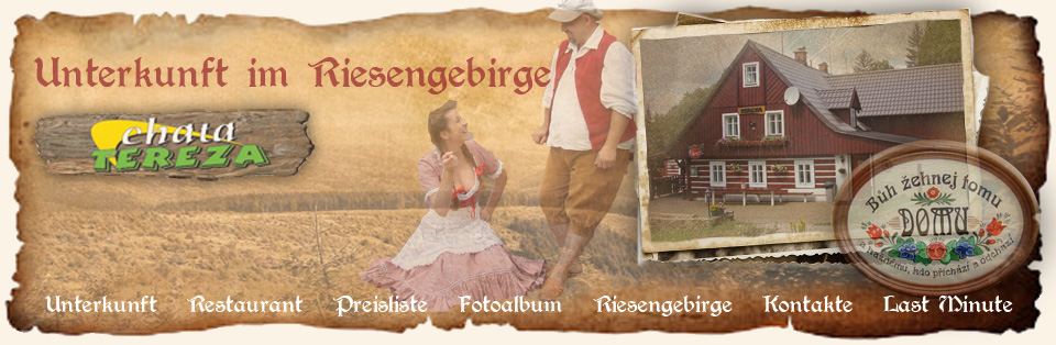 Die Pension T E R E Z A befindet sich über dem Dorf Vítkovice. Von außen hat sie den Charakter einer typischen Riesengebirgsbergbaude. Sie liegt am Waldrand, auf einem Südabhang mit einer offenen Aussicht ins Tal, abseits der lebhaftesten touristischen Zentren. Die schönsten Teile des Riesengebirges sind leicht zu erreichen. In der Pension findet man Ruhe, Behaglichkeit und einen ausgezeichneten Ausgangspunkt für das volle Genießen Ihres Aufenthaltes im Riesengebirge in allen Jahreszeiten. Dies alles für einen niedrigen Preis.